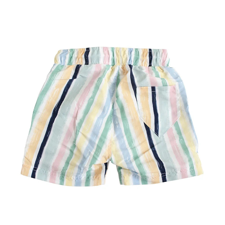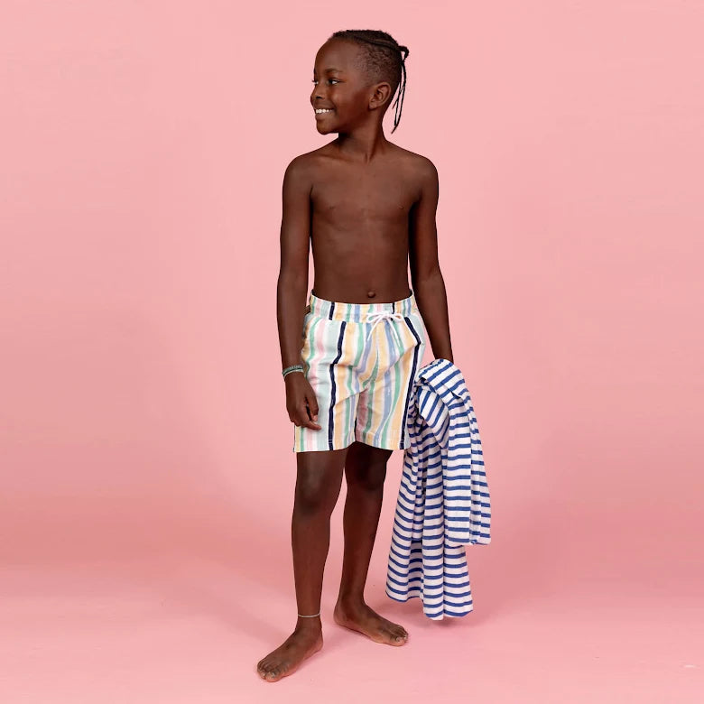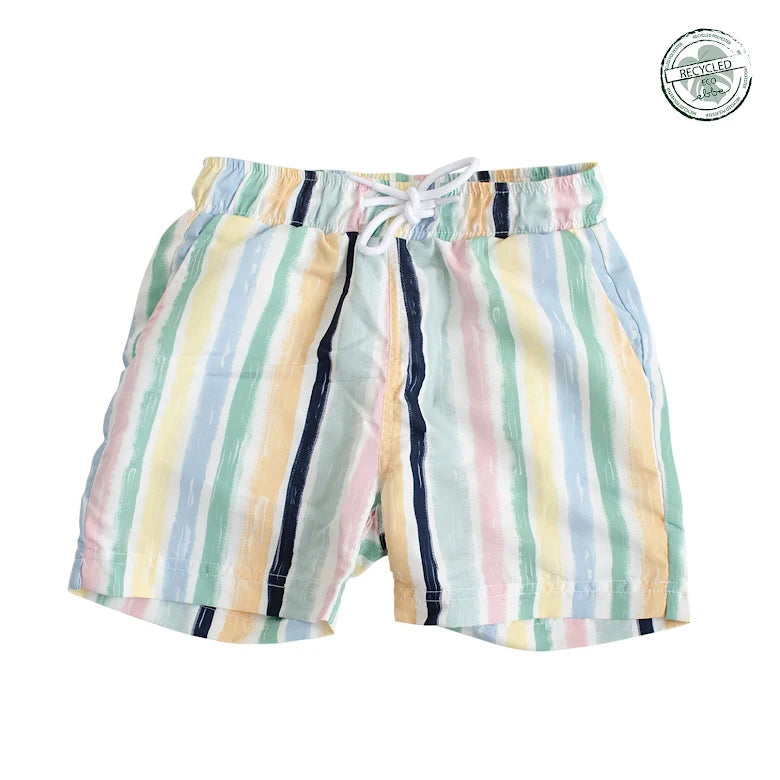 Badbyxa i löst sittande modell. Fodrad med resår och dragsko i midjan. Fickor på sidorna och en ficka på baksidan. Säsongens badkläder är tillverkade i återvunnen polyester.