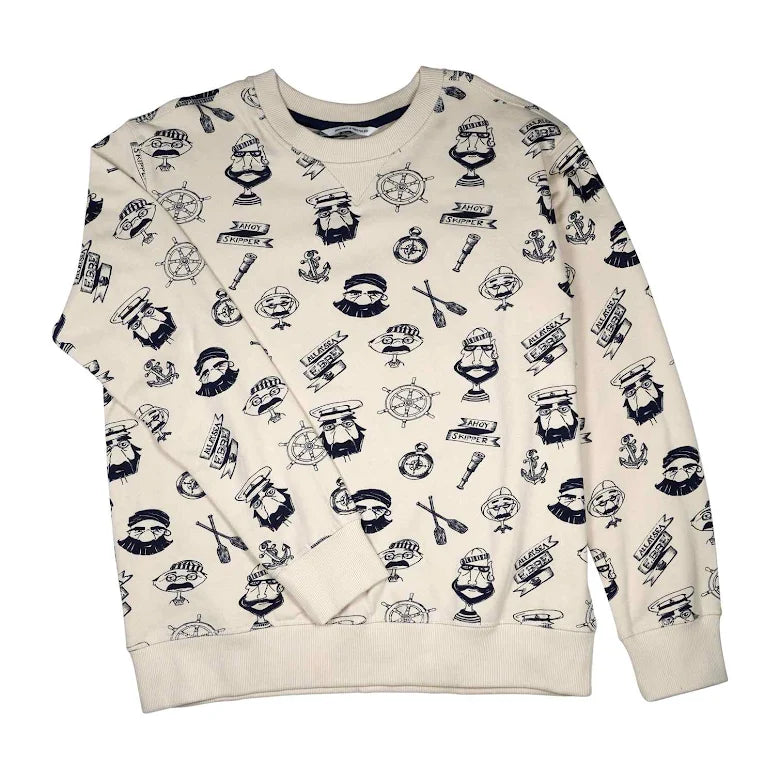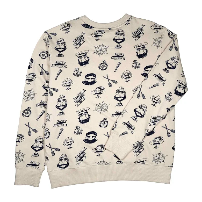 Långärmad tröja till vuxen i mjuk sweatshirt kvalitet med fint handritat tryck med lekfulla karaktärer hämtade från de sju haven – alla med sin egen historia att berätta. Ribb i halsringning, ärmslut och nederkant.