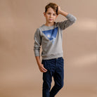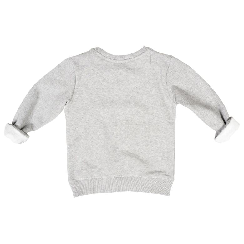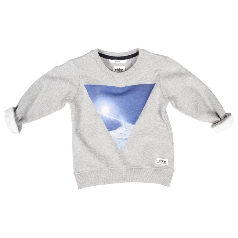 Långärmad sweatshirt till barn, liten ribbad kant i hals och raglanärm med tryck på framsida.