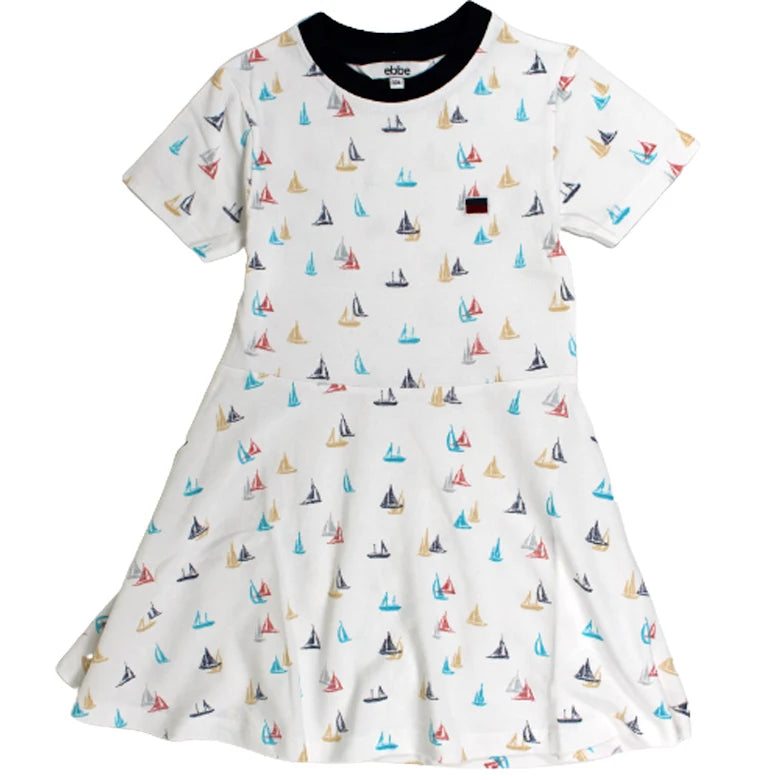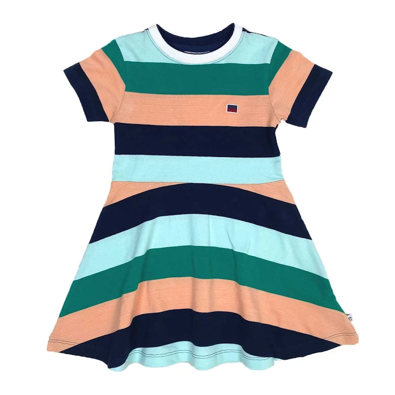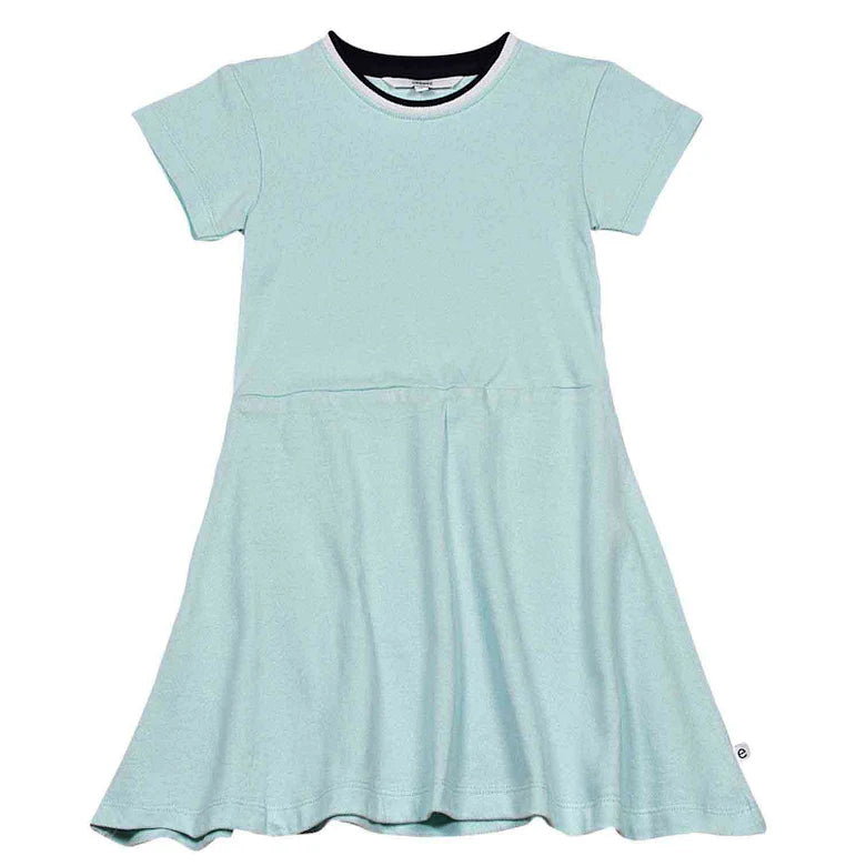 Pikéklänning till barn med korta ärmar i mjuk och skön ekologisk bomull. Skärning i midjan med en voluminös kjoldel ger klänningen ett fint fall. Hållbart tillverkad i 100% ekologisk bomull.