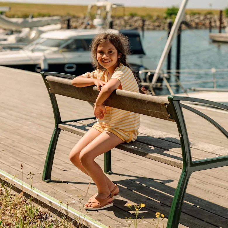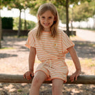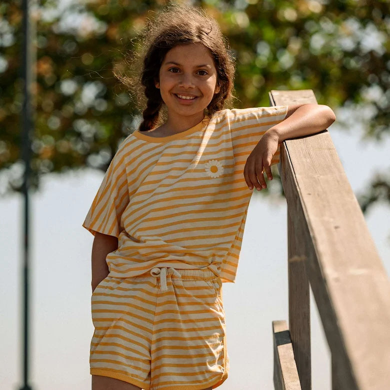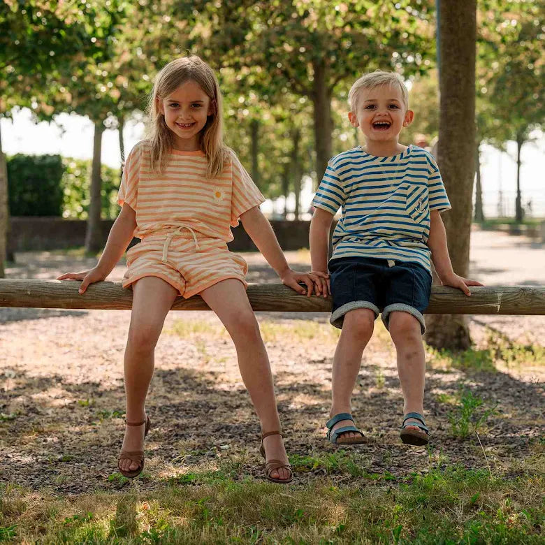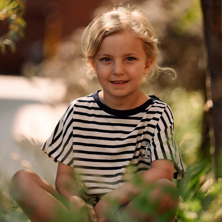 Top med kort ärm och rund halslinning med klassiskt mörkblå ränder. Bekväm passform och litet brodyr på bröstet. Matcha med Sofia shorts för en snygg och somrig look.